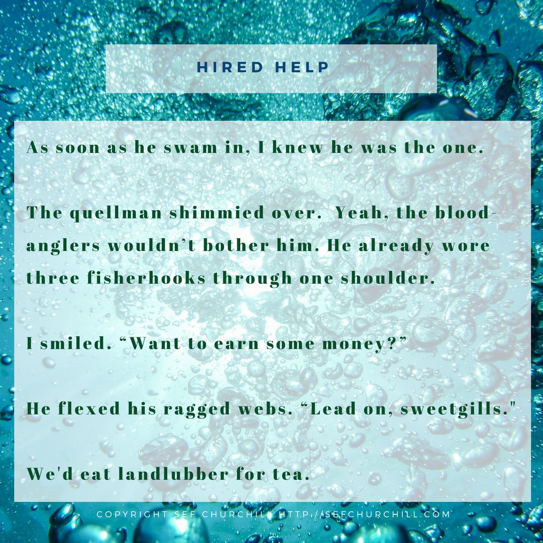 Four more fifty-worders for you. This continues the story of the monsters, plus there’s a snippet from a mermaid-noir scenario I rather like.